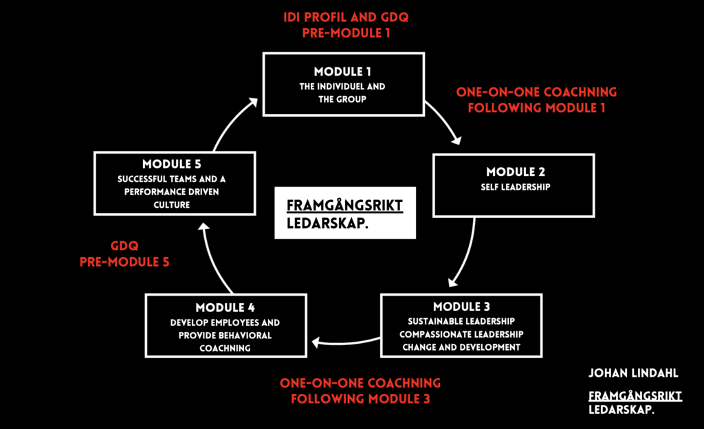 The middle steps focus on self-leadership, role clarity, sustainable and caring leadership, change and development, and how to develop people and coach based on behaviour. The group explores motivation, energy, stress, and everyday behaviours, while also strengthening their ability to coach with presence, care, and clarity—focusing on behaviours rather than solely on results.